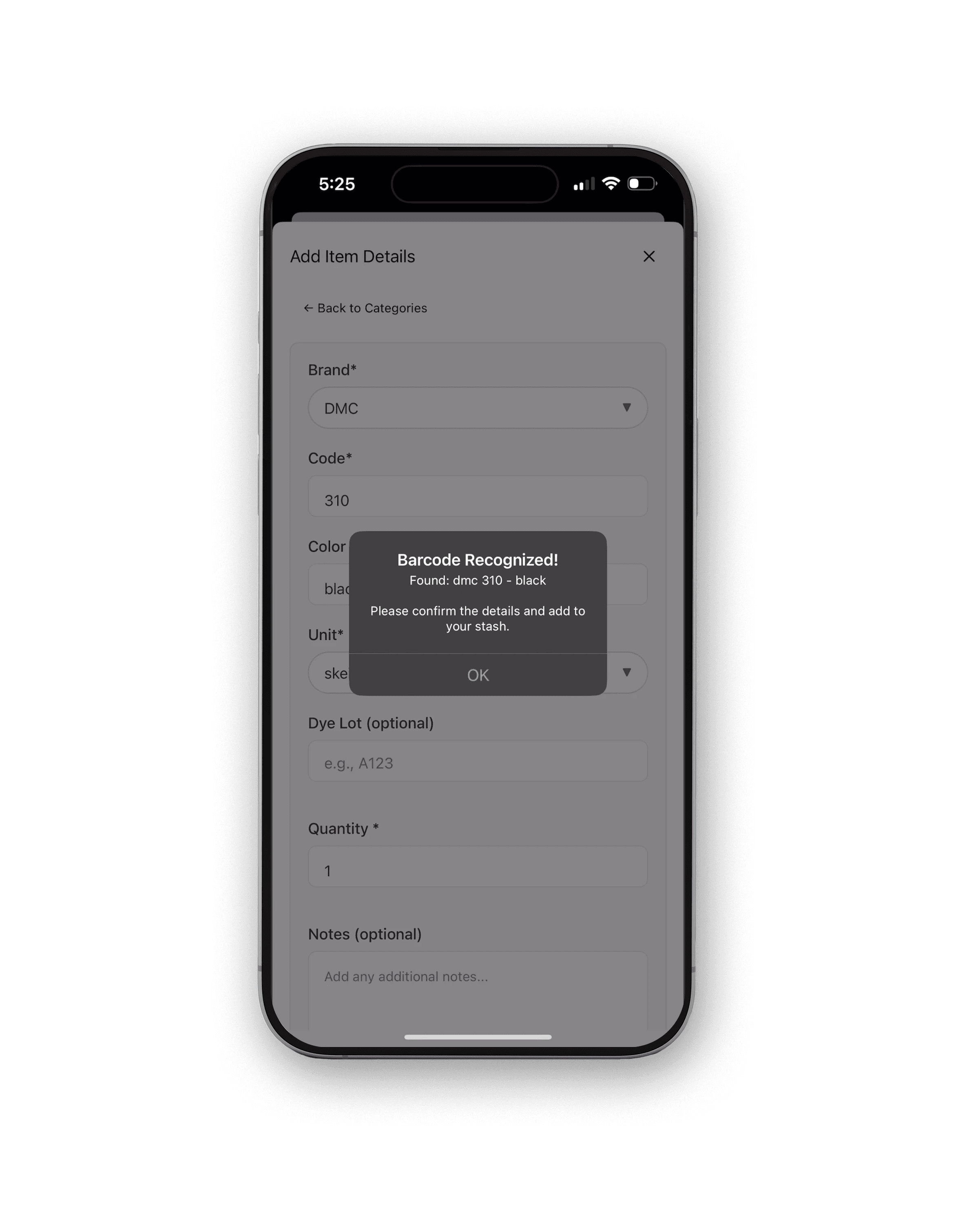 No more manually entering your floss codes. Simply scan the bar code and automatically add your floss, beads and treasures to your stash.